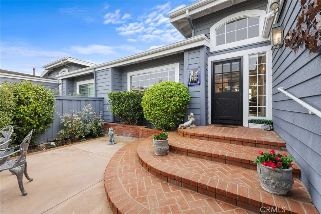 Located in the cherished 55+ community of The Terraces in Corona del Mar, 3731 Daffodil Avenue is a pristine single level home offering 2 bdrms, an office and private front and back patios. Perched on an elevated lot, this upper unit features a private gated front courtyard with lush landscaping, while the generous back patio offers peekaboo ocean and sunset sky views. Newly installed luxury vinyl plank flooring, plantation shutters, and a cozy fireplace accent the open floorplan. Vaulted ceilings add to the spacious feel, while the kitchen features a gas cooktop, double oven, wine refrigerator, center island and a sunny breakfast nook. The spacious primary suite includes a walk-in closet, dual sinks, a soaking tub and separate shower. 3731 Daffodil includes a rare, two-car driveway, in addition to a 2-car attached garage. A generously sized guest bedroom and bathroom, and light and bright office make this floor plan one of the most popular and high demand layouts. The Terraces at Corona Del Mar features a community pool, spa, clubhouse, and barbecue area, where neighbors gather to enjoy the beautiful Orange County weather. Conveniently located near Oasis Senior Center (which offers a fitness center, tech classes, American Mah Jongg, gardening and sailing clubs, and much more! The Terraces community offers a pool, spa and clubhouse. The Buck Gully trailhead nearby provides access to some of Orange County's most peaceful walking trails. Conveniently located near the 73 Toll Road with access to major freeways, minutes to John Wayne Airport, and Orange County’s renowned restaurants, shopping, performing arts centers and more!