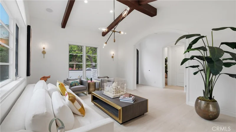 Positioned to capture panoramic mountain and city light views, this fully renovated home offers the convenience of single level living complemented by an additional upstairs bonus room and en suite bedroom and gym. Set on an expansive lot, the property features a gated entry courtyard and a resort style backyard with a pool, spa, and spacious patio, ideal for both everyday living and entertaining. The main level includes four well appointed bedrooms including the primary suite, New limestone and hardwood flooring, fresh paint interior and exterior, plumbing, and new lighting has been added throughout the home, enhancing its fresh, transitional appeal while the vaulted ceilings with exposed beams and hardwood floors adds character and warmth. The gourmet kitchen is equipped with Taj Mahal quartzite countertops, custom cabinetry, and high end stainless steel appliances, including dual ovens and a built-in refrigerator. The open concept layout flows into the family room, where a fireplace and large center island create an inviting gathering space. Designed for seamless indoor outdoor living with two sets of bi folding door systems, multiple rooms open directly to the backyard, where a covered loggia with a full outdoor kitchen extends the living space. Glass railings preserve unobstructed views, while custom lighting enhances the outdoor ambiance. The primary suite features a walk in closet, dual vanities, and a walk in shower. Generously sized secondary bedrooms and recently updated bathrooms. Located on a quiet, single loaded street, this home offers privacy while remaining close to hiking trails, parks, and top coastal destinations, including Fashion Island, Crystal Cove State Park, and Corona del Mar.