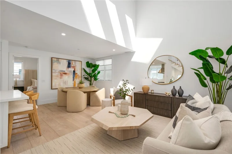 Designed by architect Christopher Brandon and built by Waterpointe Custom Homes, this 1,324-square-foot rear residence with 2 bedrooms and 2.5 bathrooms combines comfort and style in a simple, elegant way. It is located on a quiet and desirable “Flower Street” north of PCH, offering both privacy and convenience. The main living area, located on the second level, features high ceilings and skylights that bring in plenty of natural light, highlighting the European oak floors. The space opens directly to a large, covered loggia with a fireplace, creating a comfortable area for relaxing or entertaining year-round. The kitchen is designed for cooking and gathering, with Thermador appliances, custom cabinets, stone countertops, and a casual bar for seating. Also on this level is the primary bedroom and bathroom, featuring marble finishes, walk-in closet, a soaking tub, and a separate shower. The uppermost level features the private guest suite and bathroom, along with a spacious rooftop deck offering city views and a glimpse of the ocean—perfect for enjoying sunshine and sunsets. The home also includes a one-car garage and a covered carport. The home is just moments from the beaches of Corona del Mar, the restaurants and shops along Pacific Coast Highway, Pelican Hill Golf Club, Crystal Cove State Park, and Fashion Island. With highly rated local schools and easy access to John Wayne Airport, the home delivers an ideal blend of comfort, convenience, and coastal living.
