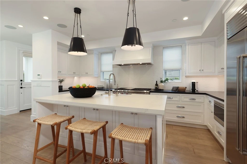 Located in the highly sought-after Flower Streets of Corona del Mar Village, 617 Narcissus is a beautifully crafted, turn-key coastal residence offering 3 bedrooms and 3 baths. Designed by Brandon Architects and built by Patterson Homes, the home showcases timeless architecture, thoughtful design, and quality craftsmanship throughout. The light-filled open-concept floor plan creates seamless indoor-outdoor living. A wall of sliding glass doors in the living room opens fully to the front patio, allowing ocean breezes and natural light to flow effortlessly into the main living spaces—ideal for both everyday living and entertaining. The chef’s kitchen connects seamlessly to the dining and living areas, enhancing the home’s inviting and functional layout. Upstairs, the private primary suite serves as a peaceful retreat, complete with its own balcony—perfect for morning coffee or quiet evenings. Two additional bedrooms are well-appointed and offer flexibility for guests, family, or office space. The expansive rooftop deck is a true highlight, providing an exceptional setting for entertaining, dining al fresco, or enjoying coastal sunsets in one of the Village’s most desirable neighborhoods. Just moments from world-class beaches, dining, and boutique shopping, 617 Narcissus offers refined coastal living in the heart of Corona del Mar.