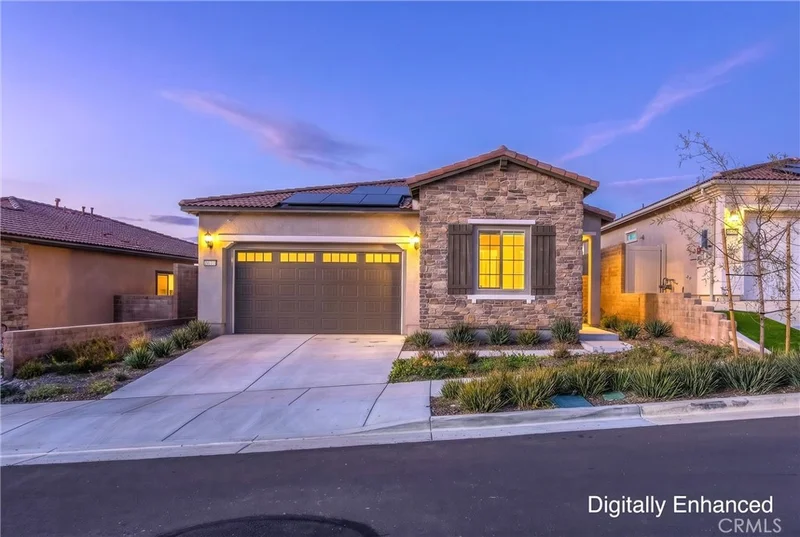 Welcome to this single story home located in the highly desirable Terramor Community within a unique combination of both 55+ residences as well as family homes. This property is designated as 55+, providing a peaceful lifestyle, beautifully landscaped backyard, easy to maintain all while still being part of a vibrant, diverse neighborhood. Amenities include Pickle ball courts, pool, gym, and so much more! The home offers a bright and open floor plan with spacious living areas ideal for everyday comfort and entertaining. The kitchen includes builder upgrades that include granite kitchen counter tops and Deep brown cabinets. The kitchen opens seamlessly to the main living space and features ample cabinetry and counter space. Generously sized bedrooms provide flexibility, while the primary suite serves as a private retreat. Enjoy outdoor living with a spacious backyard ready for you to design and create your entertainers dream. Additional highlights include FULLY PAID OFF SOLAR —owned, not leased—offering immediate energy savings!. Conveniently located near parks, shopping, dining and with easy freeway access, this home combines lifestyle, efficiency, and location. A rare opportunity to own a move-in-ready home with paid-off solar in a sought-after Corona community.