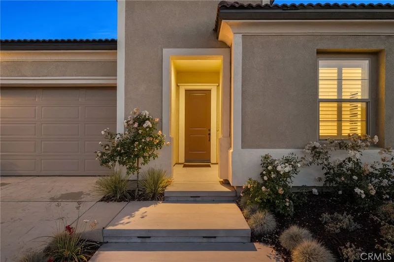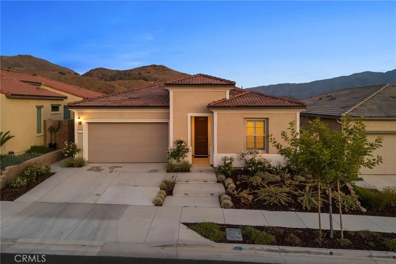 Welcome to this highly upgraded, move-in-ready home with PAID OFF SOLAR in the exclusive gated community of Terramor. From the moment you arrive, the beautiful curb appeal sets the tone for what awaits inside. Step into a bright, open layout featuring crisp white walls and stylish LVP flooring that create a modern, blank canvas ready for your personal touch. Just off the entry, you’ll find a convenient main-floor bedroom and full bathroom, as well as a dedicated office—perfect for working from home or accommodating guests. The heart of the home is the expansive kitchen, seamlessly connected to the spacious family room. Enjoy stainless steel appliances, an oversized kitchen island ideal for entertaining, under cabinet lighting, and a large walk-in pantry. Double sliding doors bathe the space in natural light and offer breathtaking views that extend from the kitchen and family room to the outdoor patio. The serene primary suite is a private retreat with sweeping views, a generous walk-in closet, dual sinks, and a luxurious walk-in shower in the en-suite bathroom. Additional highlights include a conveniently located laundry room, plantation shutters, ceiling fans throughout, and a motorized shade to keep the covered patio cool and comfortable all year round. Enjoy scenic views from multiple rooms and embrace the relaxed yet refined lifestyle this home and the Terramor Community have to offer, including indoor/outdoor pools, full gym, sauna, bar, pickleball courts, meeting rooms, billiard room, BBQ areas, and much more!