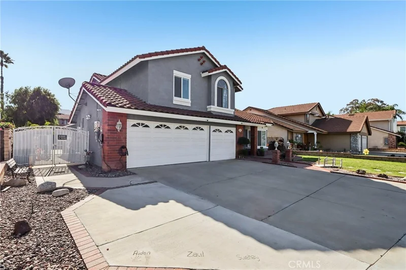 Welcome to this stunning 5-bedroom, 3-bath home designed for both comfort and entertaining. The downstairs bedroom and full bath are perfect for guests, while two open living areas filled with natural light create inviting spaces for family gatherings or cozy evenings at home. The large kitchen is ideal for home-cooked meals or hosting friends, offering plenty of space for everyone to gather. The master suite features a fireplace, his-and-her sinks, a vanity, soaking tub, and a walk-in closet. Upstairs, a loft/den complements the four additional bedrooms, providing versatile space for work, study, or a playroom. Step outside to your private backyard oasis, complete with a large pool, relaxing jacuzzi, and play set. The pool includes a removable safety fence to keep pets and children safe. Energy-conscious homeowners will appreciate Tesla Solar and plug charger, offering long-term efficiency and savings. The custom man cave garage provides a unique space for hobbies, game nights, or a private retreat. Within walking distance to Ben Franklin Elementary and close to other top-rated Corona schools, shopping, dining, and freeway access, this home perfectly combines space, style, and convenience ready to welcome you home.