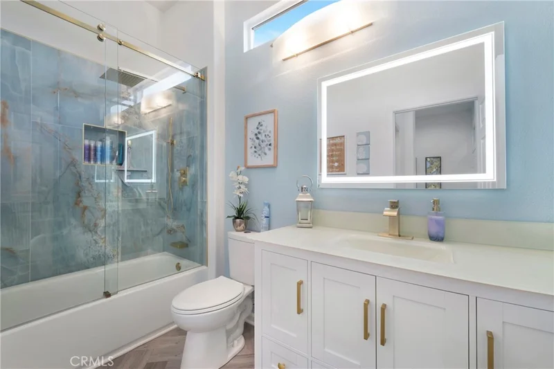 This impeccably remodeled single-story gem captures the effortless Trilogy lifestyle. Boasting two bedrooms + office, this turnkey residence shines with a fully remodeled kitchen and bathrooms, brand-new flooring throughout, and thoughtful upgrades at every turn. Step inside to an open living room featuring a built-in bar – the perfect entertaining hub. The cozy family room invites relaxation with a fireplace ideal for fireside conversations. The heart of the home is the stunning remodeled kitchen, complete with a spacious counters, pull out shelves in lower cabinets, bar-top seating, sleek countertops, and modern finishes designed for both casual dining and hosting. Retreat to the generous primary suite with direct access to an outside patio, a spa-like primary bath showcasing a large walk-in shower with bench and rainfall shower head, dual vanities, and an expansive walk-in closet. The second bedroom is perfect for guests. A versatile office with built in book shelves overlooks a low maintenance back patio. The beautifully updated guest bath complete the interior. Outside, enjoy living on the private patio with electric retractable awning – perfect for shaded gatherings or quiet mornings. Additional features include double-pane windows with plantation shutters, smart ceiling fans, and new flooring that flows seamlessly throughout. The Trilogy community features fitness centers, pools, tennis, pickleball, bocce, and the award-winning Glen Ivy Golf Course – all surrounded by rolling hills and natural beauty.