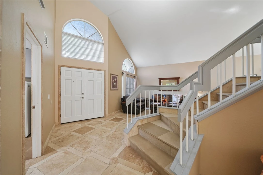 Secluded within the highly sought-after community of Crown Ridge in West Corona, at the foothills of the Santa Ana Mountains, this exceptional residence offers an ultra-premium, private setting framed by lush forest greenbelts to the side and rear—creating a serene retreat surrounded by nature. A grand entry welcomes you with towering ceilings that soar above the entryway, staircase, and formal living and dining areas, filling the home with natural light and an airy sense of sophistication. A gorgeous limestone staircase sets the tone, complemented by groutless 3D-patterned travertine flooring and matching natural stone baseboards, creating a seamless and refined aesthetic. From nearly every vantage point, tranquil views of the surrounding woods inspire a sense of peace and connection to nature. The remodeled kitchen is thoughtfully designed with granite countertops, stainless steel appliances, a breakfast bar, and soft-close cabinetry. The adjacent family room opens effortlessly to the kitchen and showcases a warming fireplace reimagined with beautiful natural stone, enhanced by elegant draperies for a sophisticated yet inviting ambiance. The first floor includes a versatile bedroom and a luxuriously remodeled bathroom featuring floor-to-ceiling marble walls and a mosaic-tiled shower—ideal for guests or multigenerational living. All bathrooms throughout the home have been meticulously upgraded with extensive use of fine stone and designer finishes. Upstairs, porcelain tile flooring flows through the hallway and into a massive bonus room highlighted by voluminous ceilings and a dramatic wall of windows. The primary suite offers a serene retreat with vaulted ceilings, two closets, including a walk-in, and ultimate privacy with no homes behind. The spa-inspired ensuite bath features striking 3D marble walls and refined stonework. Step outside to a backyard designed for tranquility and possibility—surrounded by nature, with expansive decks and patio areas, and ample space to accommodate a future pool, spa, or additional outdoor amenities. Additional features include natural stone baseboards and door frames throughout, ceiling fans, an interior laundry area, and a 2-car garage with tiled floors, built-in cabinetry, and a quiet side-mount opener. This home’s location is unparalleled, offering seamless access to Orange County’s vibrant amenities and nearby preserved open spaces, including the renowned Skyline Trails.