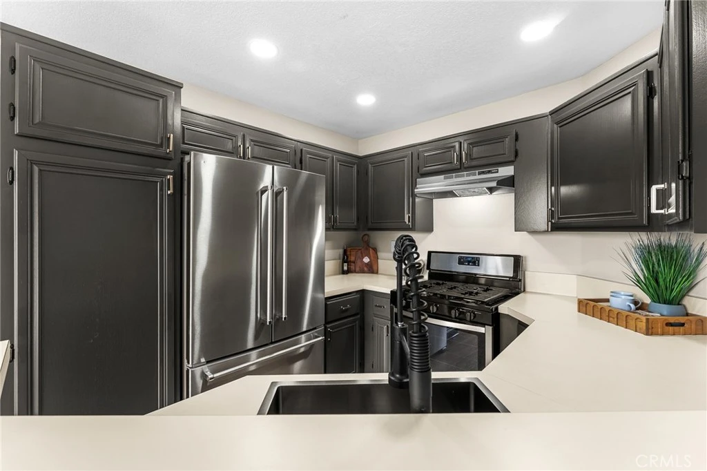 This isn’t just a condo… it’s a lifestyle. Welcome to your beautifully remodeled upstairs condo in the highly desirable gated Crown Villas community, where comfort, convenience, and resort-style living come together seamlessly. Step inside to discover brand new luxury vinyl plank flooring, fresh interior paint, and new baseboards, new lighting creating a modern, move-in-ready space that feels light, bright, and inviting. The kitchen comes fully equipped with a stove, dishwasher, and refrigerator, making everyday living effortless. The spa-inspired bathroom has been completely remodeled with a stunning brand new double vanity and sinks, offering both style and functionality, while a rare private laundry adds everyday convenience. Enjoy your own private back patio with breathtaking mountain views, perfectly positioned in a quiet foothill setting that feels peaceful and serene. This home offers gated, resort-style living just minutes to the OC commute, making it ideal for buyers seeking both lifestyle and location. Residents enjoy access to pools, spa, fitness center, tennis courts, and beautifully maintained grounds. Conveniently located close to shopping and restaurants, this home is an affordable entry into Corona and perfect for first-time buyers, downsizers, or investors looking for a low-maintenance lifestyle in a sought-after community.