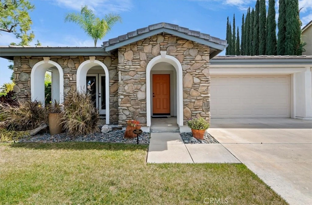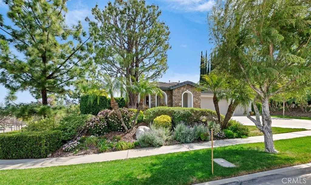 Welcome to this beautiful Eagle Glen single-story home situated on a large corner lot in a well-maintained neighborhood. This 3-bedroom, 2-bath home offers a spacious, light-filled layout with formal living and dining rooms, featuring double doors that open to an inviting front porch. The upgraded kitchen is a chef’s dream, complete with granite countertops, travertine backsplash, a large island, double ovens, stainless steel appliances, and a generous walk-in pantry—all opening to the expansive family room with a cozy fireplace and seamless access to the backyard. Secondary bedrooms include walk-in closets with custom organizers, while the primary suite features a large walk-in closet and an upgraded bathroom with elegant glass tile accents. Step outside to the private backyard oasis showcasing artificial turf, water-wise landscaping, two firepits, mature Pepperwood and Italian Pine trees, lavender, a tranquil fountain, and an Alumawood patio cover—perfect for entertaining. Low HOA and low taxes complete this exceptional offering.
