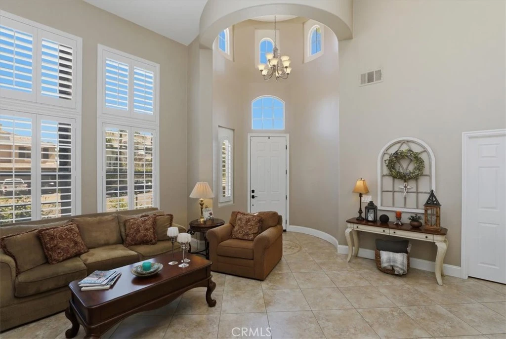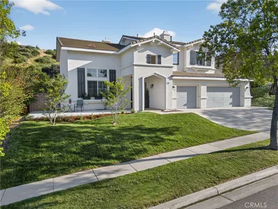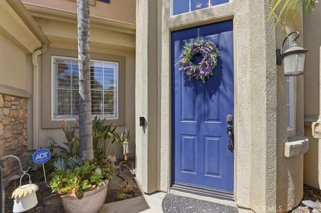 Paradise found in the highly sought-after Eagle Glen community! This exceptional home showcases one of the most desirable floor plans, offering approximately 2,885 square feet of well-designed living space with four bedrooms—including a convenient downstairs bedroom—three full bathrooms, a dedicated downstairs office, and an expansive upstairs loft/bonus room. Step inside to a grand entry featuring dramatic soaring ceilings, creating a light-filled and inviting atmosphere. The formal living and dining rooms set the stage for elegant entertaining, while the spacious family room features a built-in entertainment center and a stunning granite-surround fireplace with a custom mantle. The island kitchen is both functional and stylish, complete with granite countertops, stainless steel appliances, a built-in computer desk, and under-cabinet accent lighting. Upstairs, you’ll find three additional bedrooms, two bathrooms, and a generous loft/bonus room with custom built-ins—perfect for a media space large enough to accommodate an 85-inch TV. Throughout the home, enjoy thoughtful upgrades including plantation shutters, French doors, 7-inch baseboards, ceiling fans in every room, ample closet space, a custom storage bench, and Nest thermostats. Step outside to your own private resort-style backyard—truly a paradise! Enjoy a sparkling pool and spa with reef step and waterfall, stone seating pony walls surrounding a cozy fire pit, lush landscaping with Queen palms, sago, and Phoenix roebelenii palms, custom landscape lighting, stamped concrete, a lattice patio cover, and even a dog run. Additional highlights include privated gated courtyard, solar, low taxes and low HOA. Ideally located within walking distance to the Eagle Glen clubhouse—perfect for weekend breakfasts—and just a 5-minute drive to Dos Lagos for dining, entertainment, comedy shows, movies, and summer concerts. Beautifully upgraded and move-in ready—this is the home you’ve been waiting for!