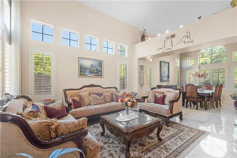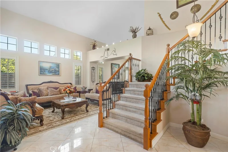 Welcome to this stunning luxury home, nestled in a quiet cul-de-sac in Corona. Built in 2006, this beautiful home offers 3,287 SF of luxury living space on a huge 17,860 SF. The open-concept design is perfect for family living and entertaining. Features include a grand foyer, soaring 2-story high ceiling, and luxury wood shutters throughout. The gourmet kitchen with double islands and built-in appliances is a chef’s dream. The main level includes a guest bedroom and full bath, perfect for visitors or multi-generational living. Upstairs, the spacious loft can be used as a second family room or easily converted into a 5th bedroom to meet your needs. The oversized master suite offers a peaceful retreat with a luxurious bath featuring a separate shower and soaking tub, as well as his and her walk-in closets, boasts a private balcony with lush hillside views – ideal for a relaxing morning coffee. The backyard oasis is perfect for outdoor entertaining, with a covered patio, built-in BBQ/bar, manicured landscaping, and a garden area for home-grown vegetables. Additional features include a 3-car garage, easy access to freeways, and proximity to shopping, dining, and downtown. Whether you're hosting friends or enjoying a quiet evening at home, this property has it all!Come and make this dream home yours – truly a perfect place to call HOME!