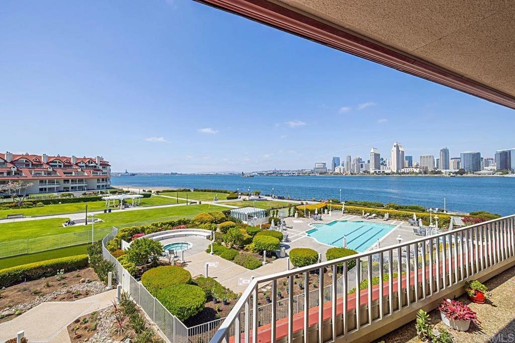 Bask in the island lifestyle at the prestigious Coronado Point community! This spacious 3rd floor unit on Coronado Island offers breathtaking panoramic views of the San Diego Bay, San Diego Skyline and Centennial Park. This single level property boasts 3 bedrooms, 3.5 bathrooms, and approximately 2,676 sf of living space. The well-appointed kitchen features custom cabinetry, granite counter tops, high-end appliances and multiple islands for gathering. The open floor plan flows from the kitchen through the dining & living room onto a wraparound balcony with the best views of the city. The spacious master suite features direct access to the balcony and features a large en-suite bathroom with walk-in shower, over-sized soaking tub, dual vanities, and two spacious walk-in closets. The unit includes 2 parking spaces in the gated, underground parking garage, and a private storage unit. Common area amenities include a large pool with hot tub overlooking the bay, a community clubhouse, and gym with sauna. Enjoy the neighboring shops, restaurants, and cafes in the Ferry Landing Marketplace. The Coronado Yacht Club and Coronado Golf Course are also just a few blocks away and can be enjoyed throughout the year. Units with this view do not come up often as this is one of the most highly desired locations in all of Coronado. Make it yours just in time for summer!