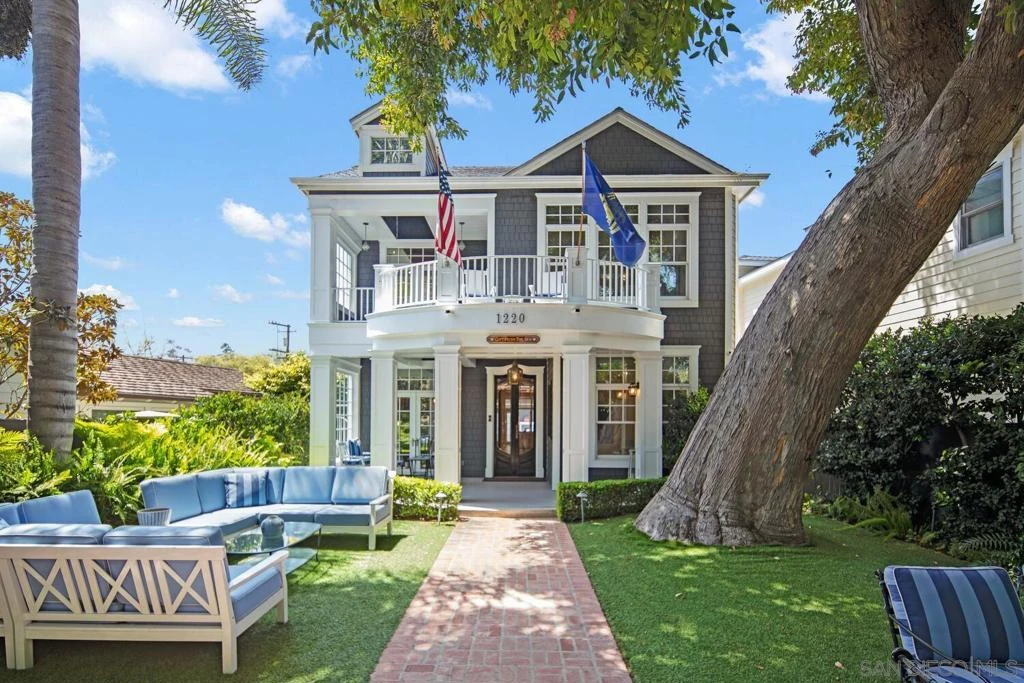Stunning Coronado Beach Retreat! Discover this extraordinary 6-bedroom, 6-bathroom beach home just one block from the iconic Hotel Del Coronado and the pristine sands of Coronado Beach. Nestled in a serene private oasis, this residence offers a perfect blend of tranquility and convenience, with top restaurants and shops just a short stroll away. Step through a private gate into a shaded front yard adorned with majestic trees and tall hedges, providing a peaceful retreat with inviting seating areas. The heart of the home features a stylish great room with a gourmet kitchen, island seating, and a chic breakfast nook. The adjacent family room, with French doors leading to a covered patio, is ideal for seamless indoor-outdoor living. Enjoy al fresco dining under a sleek awning, complemented by a waterfall spa and a cozy fireplace for relaxed evenings. For additional entertainment, the home boasts an upstairs entertainment room and a basement music room, perfect for leisure and gatherings. Recent renovations have enhanced this residence with new French Oak floors, custom cabinetry, and updated bathrooms and bedrooms, all styled with coastal furnishings and window treatments. This turn-key property is ready for you to embrace a laid-back beach lifestyle in one of Coronado's most desirable locations. Appliances include Viking kitchen range/over, microwave & dishwasher, Sub Zero Refrigerator, Uline wine cooler, and 2 Fisher/Paykel dishwasher drawers. Rooms include a gym, office, library and entertainment home. The elevator accesses all 3 levels and the roof top deck. This home has a central vacuum, 2 Lennox HVAC systems, 2 sets of Whirlpool washer/dryers (main suite and laundry room), 2 Navien flash water heaters, a whole house Halo water filtration system and interior & exterior speakers. Furnishings available include lovely Serena Lilly stools and chairs in the kitchen.