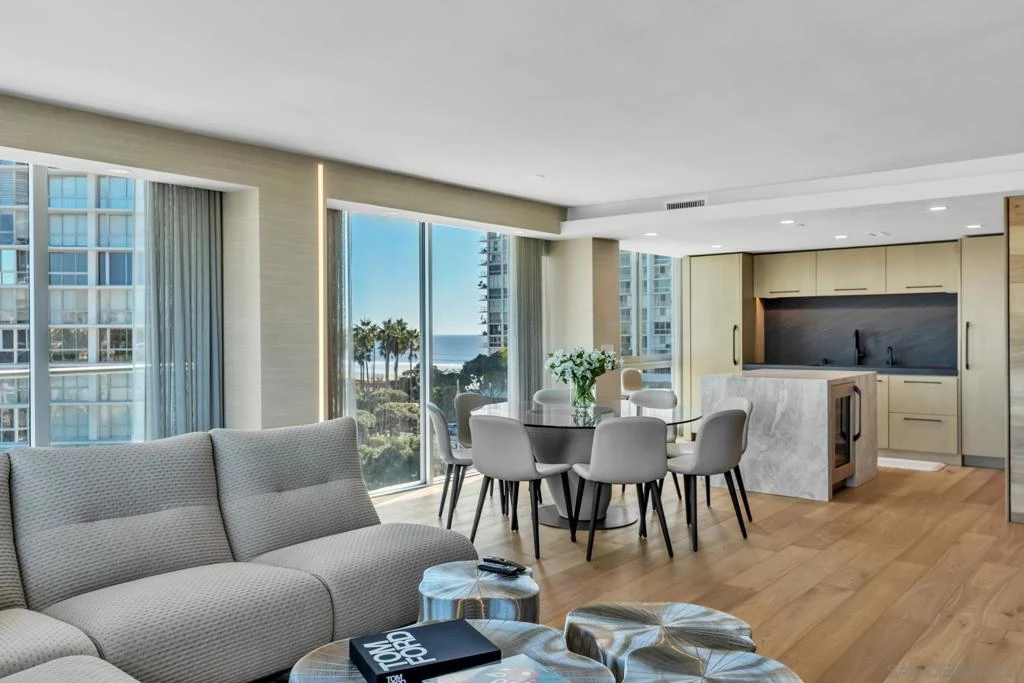 Step into luxury with this completely reimagined 3-bedroom, 3-bath condo offering breathtaking views of the bay, San Diego city skyline, and the ocean. From the moment you enter, you’ll be captivated by the sleek and sophisticated interior, featuring high-end finishes and meticulous attention to detail. This chic residence is truly a masterpiece of modern design and coastal living. Every surface has been thoughtfully upgraded, from the custom cabinetry and gorgeous countertops to the premium flooring and designer wall treatments. The open floor plan is perfect for entertaining, with a seamless flow that highlights the dramatic views from nearly every room. Enjoy the convenience of two parking spaces and the unparalleled amenities of the Coronado Shores, including pools, tennis courts, a fitness center, and direct beach access.
