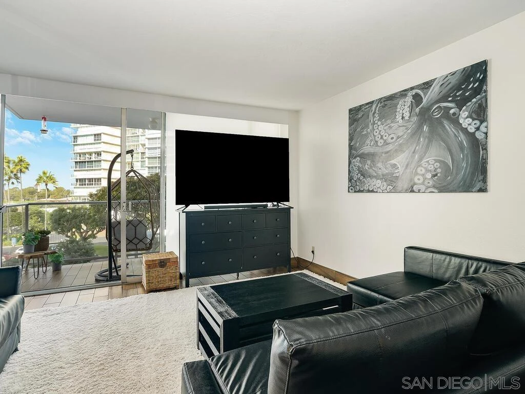 Now priced to sell and steps from the beach. This one-bedroom, one-bath residence at the Coronado Shores has been thoughtfully repositioned to reflect immediate value, offering buyers one of the most compelling opportunities currently available—just moments from the sand. The interior features new flooring, an in-unit washer and dryer, and a comfortable coastal palette that creates a relaxed, livable atmosphere. The well-designed floor plan lives larger than expected and works equally well as a full-time residence or a beachside retreat. Value is further enhanced by a large tandem parking space, an oversized private storage unit, and access to convenient building storage cages—ideal for bikes, boards, and beach gear. With a prime location, hard-to-find parking and storage, and a meaningful price adjustment, this residence stands out as one of the strongest one-bedroom values at the Shores today. Located within the gated Coronado Shores community, residents enjoy four oceanfront pools, tennis and pickleball courts, a fitness center, and the private Beach Club—all just steps from the shoreline.
