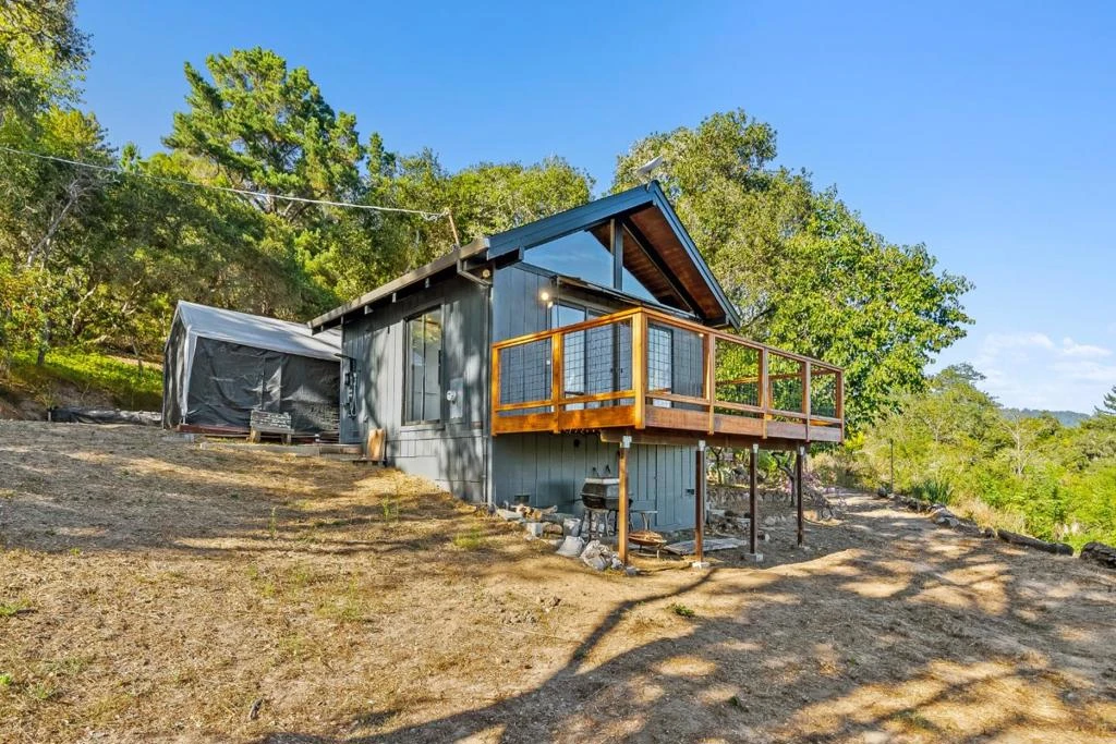 Tucked away along the Corralitos Wine Trail, just minutes from Ferrari Ranch, Windy Oaks Winery, and the Corralitos Market, this 12+/- acre sanctuary offers the perfect balance of nature and comfort. Completely renovated with thoughtful and high end finishes, the home feels both grounded and elevated. Inside, the main living space is bright and airy with tons of natural light and vaulted beam ceilings that create an inviting, open atmosphere. The kitchens Perla Venata counters bring in soft, natural textures, while the bathrooms travertine shower adds a spa like touch. Soak in breathtaking views of the Monterey Bay from the loft bed when you wake up in the morning, and from the brand new deck as the sun sets. The detached studio with large sliding glass doors and its own bathroom offers abundant natural light and is perfect for guests or a private workspace. This property invites you to slow down and connect. Wander your own private mountain biking trails, practice yoga, have a picnic under the trees, or simply breathe in the quiet. With room for expansion and plenty of open space, the possibilities are endless. Whether you are seeking a private sanctuary, a vacation getaway, or a one of a kind investment, this mountain retreat offers it all.