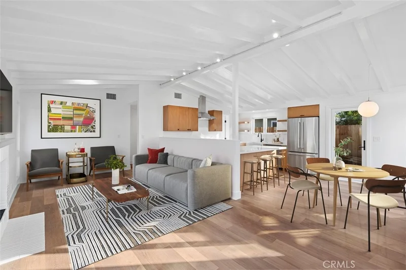 Revel in this remodeled and expanded Cliff May inspired Mid-Century Modern home with true indoor/outdoor Rancho style. The 2022 remodel doubled the livable square footage and left nothing undone, bringing the home up to today's standards while honoring its architectural heritage. Open great room with kitchen, living, and dining, plus 3 bedrooms, 2.5 baths and a laundry room complete the interior. Roof, siding, windows & doors, flooring, electrical, kitchen & baths, AC and furnace, insulation, tankless hot water heater, and landscape/hardscape are all NEW. The home enjoys a low traffic, end of cul-de-sac location and a pie-shaped lot with huge backyard. The lucky owner has room to add a pool and/or ADU. Two outdoor patios beckon you to bask in Eastside Costa Mesa's sun and ocean breezes. A detached 2-car garage is off the alley, along with an additional off street parking spot. The location can't be beat with proximity to schools, parks, beaches, and amazing retail options. Truly a rare architectural gem! *NOTE: Several photos show virtual staging.