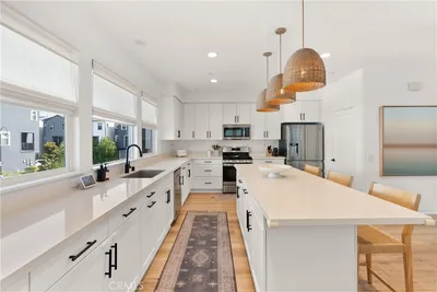 With modern architectural details, this light-filled home offers a seamless flow from room to room. The spacious layout features a large living room, a separate dining area, and two generously sized bedrooms with mirrored wardrobe doors. Finishes include hardwood flooring, granite countertops, a stainless steel gas range with built-in oven, refrigerator, and contemporary fixtures throughout. The beautifully landscaped grounds showcase mature palm trees and Birds of Paradise, creating a serene setting. The residence includes one assigned carport with storage and access to a community laundry facility. Ideally located near world-famous beaches, the scenic Back Bay trails, Lido’s premier boutique shopping, and the renowned dining along 17th Street—truly surrounded by everything you need.