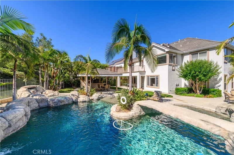 Gorgeous two-story Located at the Guard gated community in Coto de Caz. Corner Location with Mountain view. Open floor plan with high ceiling , features 5 bedrooms, 4.5 Bathrooms with bonus room and Office. Downstairs has one bedroom with full bath. Beautifully landscaped back yard includes pavilion w/fireplace, rock pool w/ SPA & waterslides. Convenience close to award-winning schools, shopping, restaurants and Toll roads.