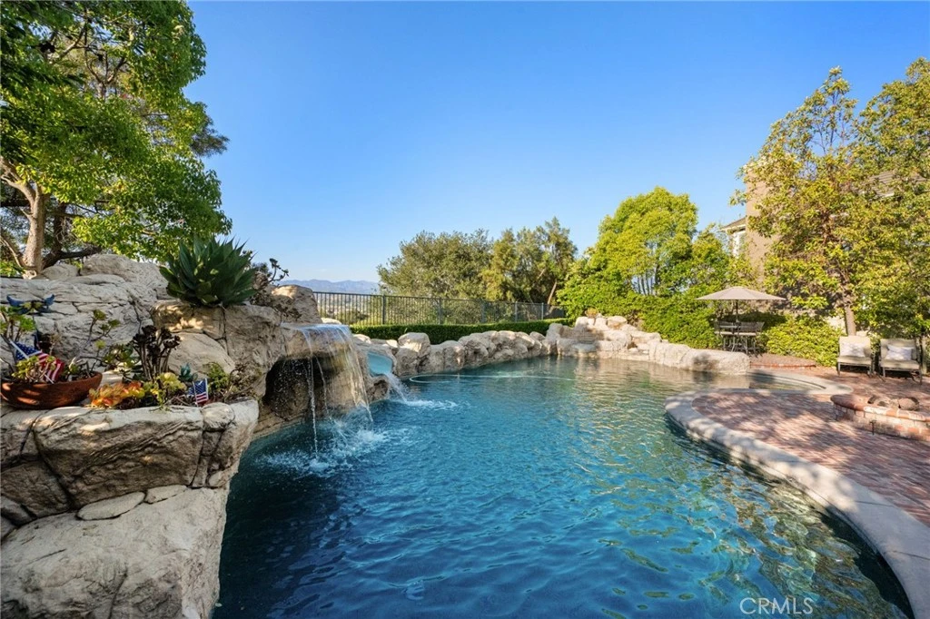 Inside the gates of Coto De Caza sits this beautiful home with over 5000 square feet of well-appointed living space, this fabulous property offers the perfect blend of luxury, serenity, and comfort. Soaring ceilings greet you in the beautiful entry-way that sets the tone for this incredible home. With an abundance of naturally light and stunning views you will find a well appointed kitchen including a walk-in pantry, large center island, and stainless steel appliances. The kitchen flows seamlessly into the family room, complete with a fireplace, and wrap-around garden windows that bring the outside in. These rooms overlook the expansive entertainer's dream back yard, with a custom brick wood burning fire-place, covered patio, a glistening pool, fantastic rock waterfall features, including a rejuvenating spa. This outdoor oasis is perfect for relaxing with your family and friends or hosting a fun event. The formal dining room is ideally located adjacent to the chef's kitchen and flows seamlessly into the formal living room. The main floor also encompasses a spacious bedroom with a private bathroom and walk-in closet, also located on the main floor is an additional room that can serve as a library, in-home gym or an executive office which is enhanced by large windows and cathedral ceilings. As you make your way upstairs, you will find the primary suite is your own private sanctuary, graciously appointed with plenty of room to take in the dramatic, unobstructed views of the mountains, which you can also enjoy from the attached extensive deck. The spa-like bathroom has a jetted soaking tub, a walk-in shower, dual vanity sinks and a spacious walk-in closet. Upstairs also includes 3 additional en-suite bedrooms, two of which are junior suites, with over-sized custom walk-in closets. The home also provides a 3-car garage with above-rack shelving and a long driveway that can easily accommodate up to 7 cars total. Additional highlights include: Recessed lighting throughout, stunning wood and travertine flooring, separate laundry room with sink, and fully owned solar panels. 4 Wandering River embodies the epitome of Southern California living at its best - Welcome Home!!