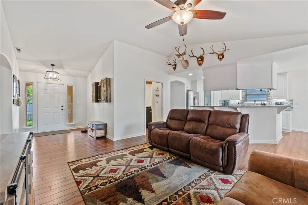 Bright 3-bed, 2-bath home (1,543 sq ft) 2 car garage located in Lake California with an OWNED SOLAR system. Engineered hardwood throughout with open concept. The kitchen features granite counters, a walk-in pantry, and a great dining area. Large primary suite includes a roomy bathroom with a soaking tub. Large back deck made out of tech decking leading to wonderful useable back yard,. Laundry room with shelving, fully fenced usable backyard with shed, and side-yard parking for boat or other equipment. HOA ($99/month per sellers) includes pool, basketball & tennis courts, new playground, archery range, river access & boat ramp, disc golf, game room, campground, equestrian center, private airport, on-site restaurant & bar, and more. Ready to show — contact for details and a viewing.