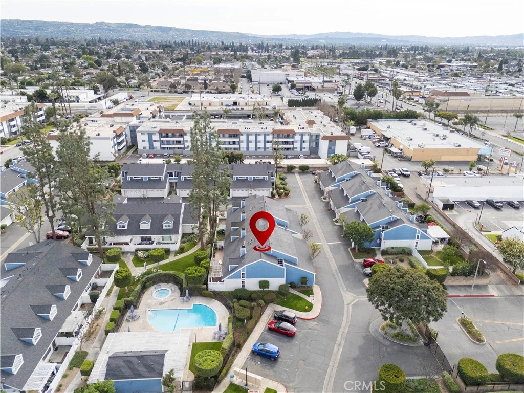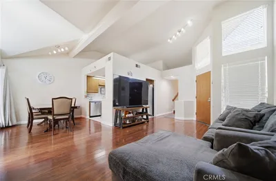 Situated within a gated townhome community offering a pool, spa, and well-maintained common areas, this end-unit residence features a functional layout with added privacy and a generously sized private patio area rarely found in similar homes ideal for outdoor living or entertaining. The main living area offers vaulted ceilings, a skylight that fills the space with natural light, and a brick fireplace creating a warm and cozy atmosphere. The kitchen is finished with granite countertops and is complemented by tile flooring that extends through the dining area. The main floor also offers a bedroom and full bathroom providing flexibility for guests, multigenerational living, or a home office. Upstairs, the primary suite offers privacy and comfort, accompanied by an en-suite bathroom. The upper level also includes a spacious loft with access to a private balcony, ideal for a secondary living space or workspace. Conveniently situated near shopping, dining, parks, and major commuter routes, this home presents a well-balanced combination of location, community amenities, and a low-maintenance lifestyle.