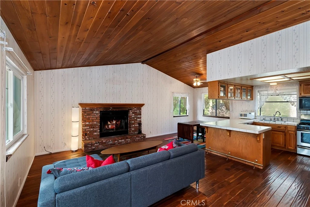 This comfortable mountain home is in need of a facelift. Seller has priced it to sell and has copies of the home inspection and wood destroying pest inspection for s speedy escrow. It has many desirable features not often found. It is sitting on a large near level lot that has a sunny area for a garden and a shady area near the house. If you enter off the deck you walk into an open concept living-dining area. It has high ceilings and a brick fireplace. In front of the fireplace is a large custom sun made out of slate inbedded into distressed engineer wood floor. The kitchen has oak cabinets and ceramic tile counter tops with newer stainless appliances including a 5 burner gas stove. On the upper level is a large bedroom, just painted and an enclosed deck surrounded by windows. This could be a great studio, exercise room or a place to relax. It takes in the unobstructed valley view. Also on the main level is a full bath. Downstairs are two bedrooms and another full bath. The home is equipped with a central vac system and the owner has installed a new dishwasher, refrigerator, furnace and tankless water heater. The oversized two car attached garage has a 220 outlet and a wall of cabinets for the do it yourselfer or a contractor. The property is in a convenient area to get ether down to the city or Highway 18. It has tons of parking for an RV or boat. Possible area for a future ADU. This home is clean and ready to move in. Come take a look.
