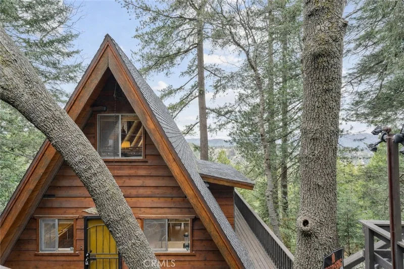 Cabin in the Sky is a one-of-a-kind custom mid-century A-frame cabin perched above the treetops, offering spectacular panoramic views and successful short-term rental history. This unique mountain retreat features 3 bedrooms and 3 bathrooms, including a separate apartment ideal for guests or rental flexibility. Set on three lots, the property offers multiple outdoor entertaining spaces, expansive view decks, and a private hot tub for year-round enjoyment. Vaulted A-frame ceilings and large picture windows fill the home with natural light and showcase breathtaking mountain and valley views. The thoughtful layout maximizes both privacy and functionality. Additional highlights include level entry access and parking deck for three cars. A rare combination of architectural character, income potential, and stunning views, perfect as a full-time residence, weekend escape, or continued STR investment. A truly unique architectural gem. Conveniently located close to Crestline amenities, Lake Gregory, dining, and recreation 90 minutes from Los Angeles. Cabin in the Sky is a true mountain original offering elevated mountain living with unforgettable views, mid-century character, and versatile living spaces- where timeless design meets unforgettable scenery. A one-of-a-kind opportunity. Come experience it.