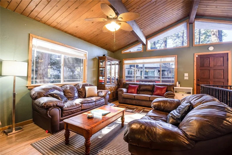 Escape to your private mountain oasis at this cozy and serene cabin located in the picturesque Lake Gregory community, just 15 minutes away from Lake Arrowhead. Perfect for those seeking relaxation or adventure, this beautifully updated cabin offers a peaceful getaway while being just minutes from the lake, historic San Moritz Lodge, and local amenities. Cabin is perfect for personal use and an additional source of income with an approved active short-term rental(STR) permit. Property features 3 bedrooms and 2 baths, updated granite countertop kitchen with new appliances, new washer and dryer in dedicated laundry space, brand new roof installed 2022 with permits, new 200 AMP electrical circuit breaker PLUS car charging outlet in driveway (2022) with permit, power generator outlet (2022) with portable new generator, approved for Short Term Rental (STR) permit for a max occupancy of 8 persons, cement paved front deck and back patio with dog kennel and fenced-in outdoor space with plenty of room to expand overlooking the creek. The driveway is paved and level with the street, making parking easy and maintenance-free. The interior is freshly painted with year-round easy access from the city road and an easy walk to the nearby lake. The home is turn-key ready with furniture, security cameras, keyless door entry, water & temperature monitoring systems for easy mountain living. This property currently has these ratings for VRBO(9.8/10 150+ reviews)/AirBNB (4.9/5.0 20+ reviews) and can immediately be operated as a Short Term Rental(STR) by the new owners.