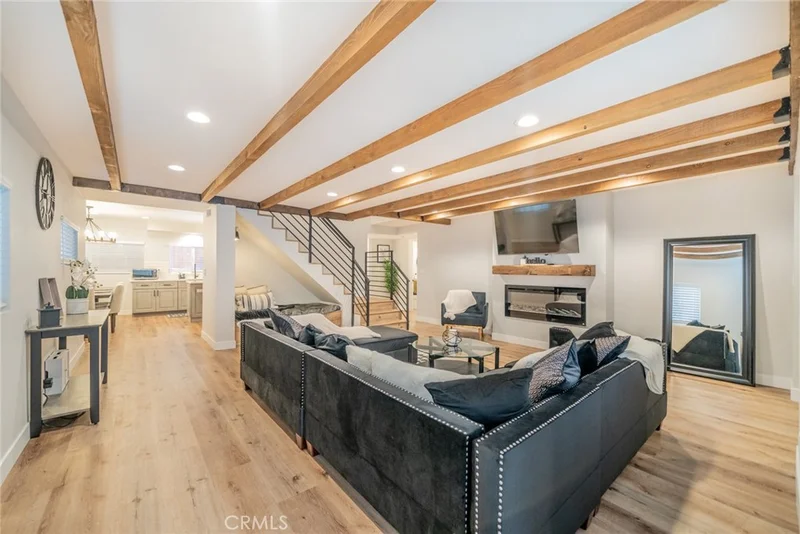 Turn-key 5 bedroom, 4 full bath home in Crestline near downtown and walking distance to the lake. This home has been completely remodeled to a modern/cabin feel. Lots of upgrades including new AC, new windows, new flooring & baseboards, recess lighting, ceiling fans/lighting, tile showers/bathtubs, new vanities with charging stations built in, new kitchen with quartz countertops, floating shelves, new appliances, farm sink, backsplash, custom iron rails leading up stairs, under stairs has nook with light, recessed electric fireplace in living room and master bedroom, laundry room, and so much more. The entire home has been painted inside & out, enjoy the private back courtyard with tiled outdoor kitchen/BBQ area, with sink, or sit on the swing and enjoy a fire in the fire-pit. Extra storage for wood in both the front and back and a bonus shed/storage area. The home has so much to offer with plenty of ground level parking on a quiet street. All upgrades were with building plans, inspection summary and permits, available upon request.