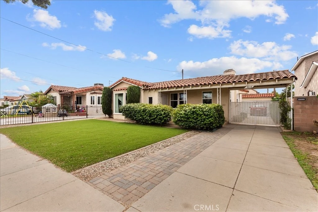 Welcome to this beautifully maintained single-story Spanish-style home featuring 2 bedrooms, 1 full bathroom, and 1,199 sq ft of living space. Nestled on a generous lot, this property offers incredible outdoor amenities including a lush grassy backyard with mature citrus trees—perfect for relaxing or entertaining—and an inviting front yard with well-manicured landscaping. The long gated driveway provides ample parking options, allowing vehicles to be secured behind the gate or conveniently in front. A detached two-car garage offers additional parking or storage flexibility. Inside, you’ll find a functional floor plan with abundant natural light and a new stove in the kitchen. Available for a December 1st move-in & located in a desirable neighborhood with easy access to local conveniences, this home is a rare lease opportunity combining comfort, privacy, and classic curb appeal.