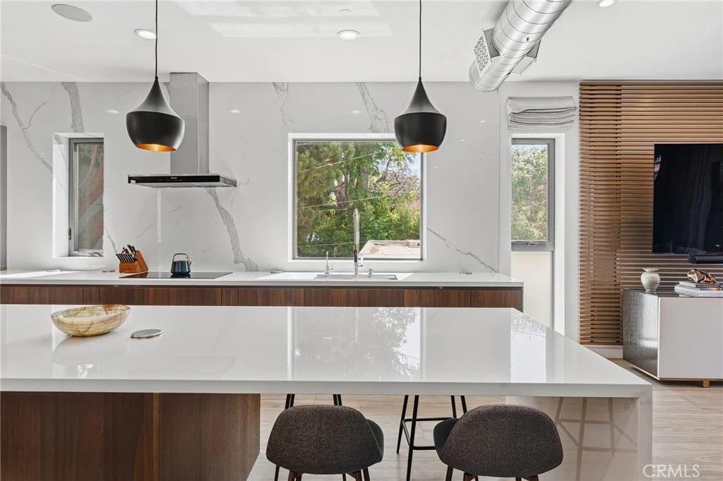 Ideally located Culver City townhome with designer finishes throughout offering an unparalleled level of luxury just steps away from Downtown Culver. Step inside and you are immediately greeted by an open concept living space flooded with natural light. The gourmet kitchen includes an eat-in island, top-of-the-line Miele appliances, custom Italian cabinetry, and an elegant custom dry bar. Downstairs half bathroom and laundry included. Balconies off both the living room and primary suite overlook a private backyard space. The primary suite retreat features two spacious closets, a large walk-in shower, private toilet closet, marble floors, hand selected stone, and custom cabinetry. Two additional generously sized bedrooms share a hallway bathroom with a custom shower-tub combo. The true showstopper is the 700+SqFt rooftop deck, where you can bask in the sun while enjoying stunning views of the surrounding cityscape, Culver City steps, and snowcapped mountains. An oversized garage with more than enough space for two cars and an additional workshop or gym. A home that truly shines in a location that cannot be beat! Situated in one of Culver City’s most sought-after neighborhoods within walking distance to Downtown Culver restaurants, shops, entertainment venues, and the Exposition Line offering direct access to Downtown LA and the beach. Highly sought-after Culver City school district. Private, end-unit offered fully furnished. Internet, water, gas, and trash all included in rent! Don’t miss this incredible opportunity to live in an ever-booming neighborhood.