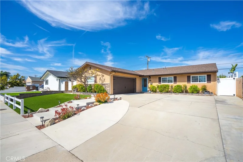 This is the property you have been waiting for! Welcome to this turnkey, fully remodeled, 4-bedroom / 2-bath home located in the heart of Cypress, CA. With a fantastic open floor plan and a fully remodeled kitchen, comfortable living and easy entertaining are within reach. The gourmet kitchen boasts a spacious island and opens to a large versatile living space that can be used for dining, seating, or functional work space. High quality craftmanship abounds throughout the home. Upgrades include: new windows throughout, a permitted room addition with fireplace, new central air, new quiet cool fan system, and more. Most importantly, this home has the perfect flow for modern living while offering tasteful finishes and optimal comfort. The property has amazing curb appeal with artificial grass, new fascia boards, recently replaced roof, added cement walkway and steps, wider driveway for RV access, and beautiful landscaping. The backyard is perfect for entertaining with a pool and jacuzzi with chlorine salt generator and high energy efficient pump, covered patio with BBQ/bar/refrigerator, and new vinyl gates. The property is located just a few yards away from the award-winning Landell Elementary School and a few blocks away from the nationally recognized Oxford Academy, both known for their outstanding academic programs. Veterans Park is just a short stroll away, offering open green space, playgrounds, and sports fields for everyone to enjoy. This home offers the best of Cypress living—modern upgrades, excellent schools, and a friendly neighborhood community—all in one amazing location!