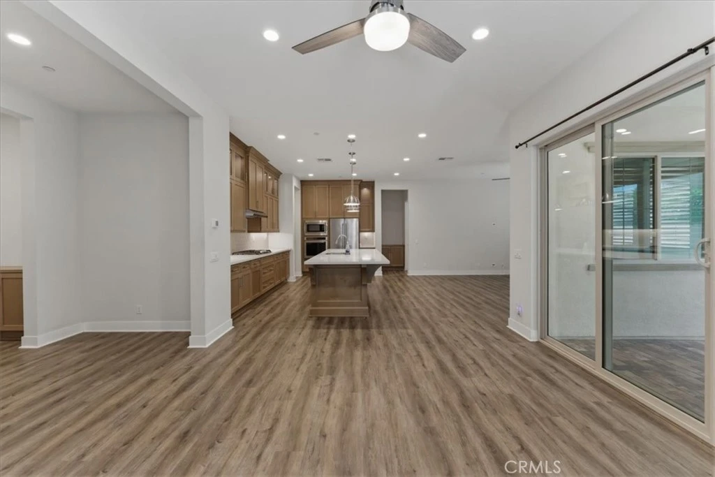 Welcome to Ovation at Flora Park, where resort-style living meets modern comfort in this beautifully upgraded single-story home. Offering 3 bedrooms and 2.5 bathrooms, this desirable single story floorplan provides both functionality and flexibility for everyday living. The open-concept layout is enhanced by luxury vinyl plank flooring, plantation shutters, and abundant natural light. The kitchen serves as the heart of the home, featuring quartz countertops, a spacious eat-at island, ample cabinetry, and a walk-in pantry—ideal for both daily living and entertaining. The living and dining areas flow seamlessly and extend to an enclosed outdoor patio, creating a private space perfect for relaxing or hosting year-round. The primary suite offers a peaceful retreat with a spa-inspired bathroom and generous closet space, while two additional bedrooms provide versatility for guests, a home office, or hobbies. Additional features include a full laundry room with built-in cabinetry, direct-access two-car garage, and a custom outdoor irrigation system, along with quality upgrades throughout. Residents enjoy access to Flora Park’s resort-style amenities, including a pool, spa, fitness center, pickleball courts, and clubhouse—all within a vibrant 55+ community. A wonderful opportunity to own in one of Cypress’s most sought-after neighborhoods.