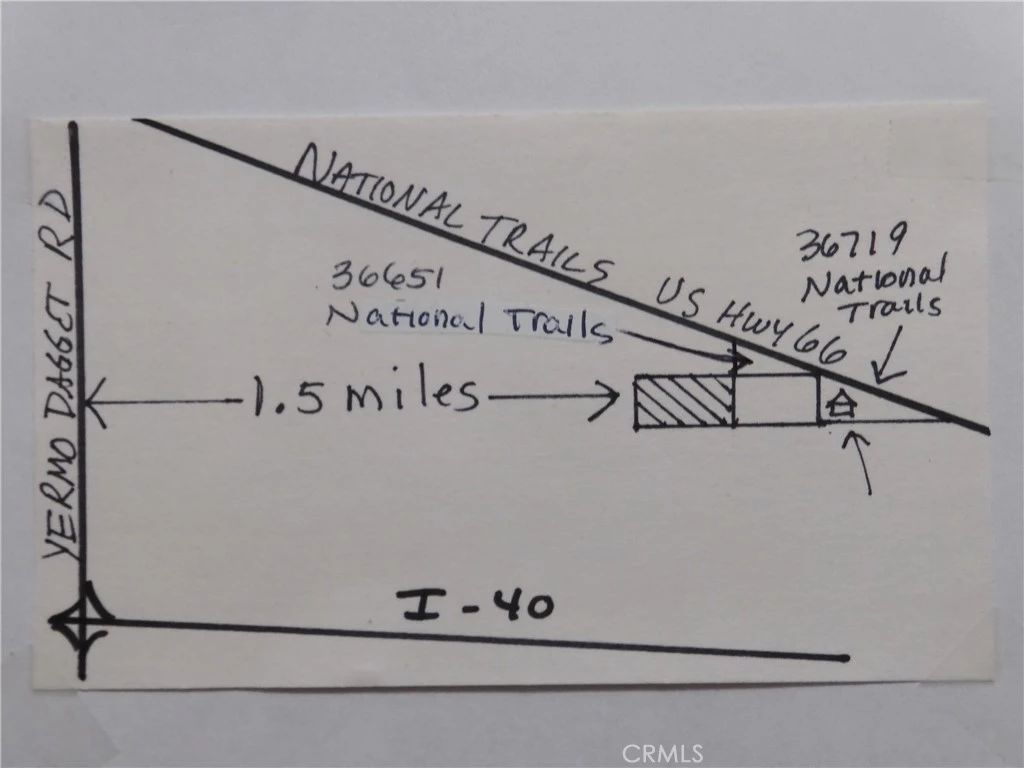 Nice 5 acre parcel approximately 300' south HWY 66 (National Trails Hwy). Approx. 1.5 miles east of Yermo/Daggett Rd. It is just before 36651 US Hwy 66/National Trails Hwy. There appears to be some vehicles & debris, etc. encroaching onto this property from the neighboring property at 36651 US hwy 66/National Trails Hwy. No sewer or water service available. Residents in area have wells and septic systems. Electric should be available, there is a home close to the property. Buyer to verify zoning & availability of electric.