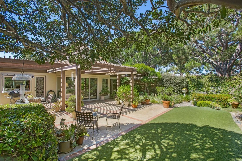 Welcome to this exceptional single-level home nestled in the prestigious 24-hour guard-gated oceanfront community of Niguel Shores. Ideally situated on a private corner lot within a serene cul-de-sac, this approximately 1,700 sq. ft. residence offers true single-level living with no interior steps, combining comfort, functionality, and remarkable potential. Open and airy layout with vaulted ceilings and abundant natural light. Three bedrooms and two bathrooms, with a flexible layout: the wall between two secondary bedrooms has been removed, easily re-convertible to individual rooms Spacious formal living and family rooms with fireplace, large windows, and multiple skylights. kitchen with stainless steel appliances, including refrigerator/freezer, dishwasher, range, and microwave, indirect kitchen lighting, breakfast bar, and adjacent dining area. Family room opens to an extremely private patio—perfect for indoor-outdoor living! The primary suite offers generously sized with walk-in closet, extended vanity area, walk-in shower, and skylight and private access to the lush backyard via double sliding glass doors. Beautifully landscaped backyard—a dream for gardeners and outdoor entertainers. Partially covered patio, synthetic turf, and expansive hardscape area ideal for gatherings. This home has ample space for future home expansion or an addition, if desired. Additional highlights include an oversized two-car garage with washer/dryer hookups and direct home access spacious gated courtyard entry, perfect for added privacy and outdoor enjoyment, corner lot location offering exceptional privacy, off-street parking, and a large driveway, plantation shutters and built-ins in the ancillary bedrooms and central heating throughout. This home offers tremendous potential for renovation, remodeling, or expansion, making it an ideal investment in one of the most sought-after coastal communities in Southern California. Residents of Niguel Shores enjoy exclusive access to private beach bluff parks, direct beach access, community clubhouse, "Olympic-sized" pool, spa, tennis courts, pickle-ball courts and more—all just minutes from world-class Ritz Carlton & Waldorf Astoria resorts, golf courses, walking distance to Salt Creek Beach with its amazing "surf breaks" and Dana Point Harbor with its Lantern District offering incredible dining and shopping opportunities. Don't miss this rare opportunity to make your dream home a reality in the heart of Monarch Beach!