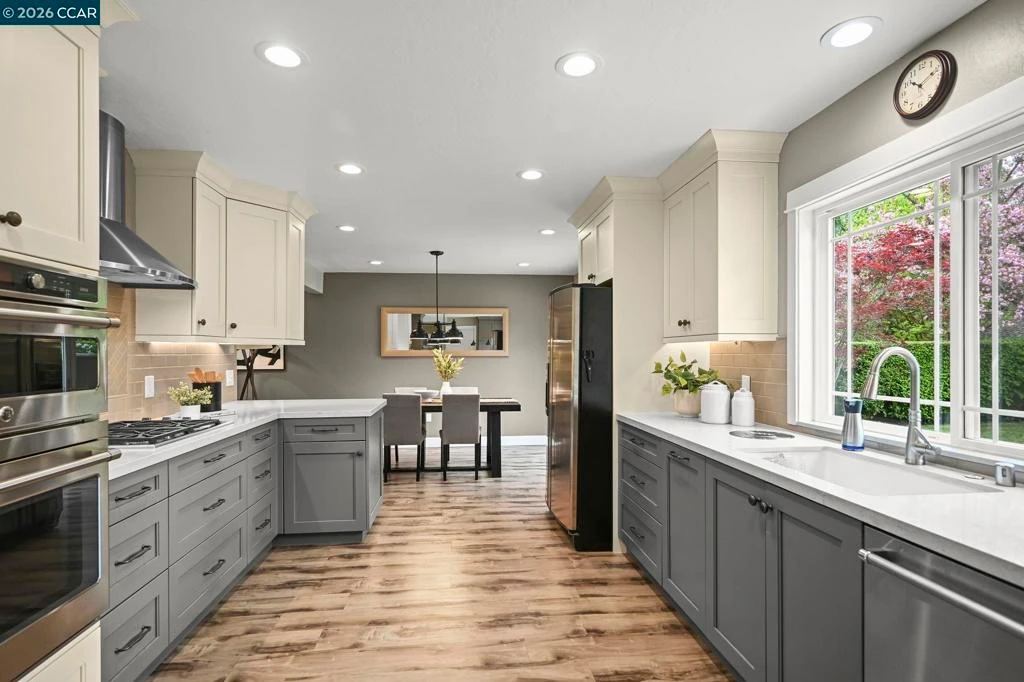 Welcome home to this beautifully updated 5-bedroom, 2.5-bath residence in the desirable Sycamore neighborhood. The remodeled gourmet kitchen boasts quartz countertops, soft-close cabinetry, a gas cooktop and GE appliances — perfect for everyday meals and entertaining. Luxury vinyl plank flooring flows through the main level while newer carpet provides comfort upstairs. Two cozy fireplaces, indoor laundry and thoughtfully updated bathrooms add modern convenience. Spacious yard is entertainer’s dream with a pool, sports court and dedicated gardening areas. Located close to highly rated schools, parks, walking trails, the freeway and downtown Danville. Sycamore HOA amenities include pools, tennis courts and clubhouses — this home blends neighborhood lifestyle with move-in-ready upgrades.