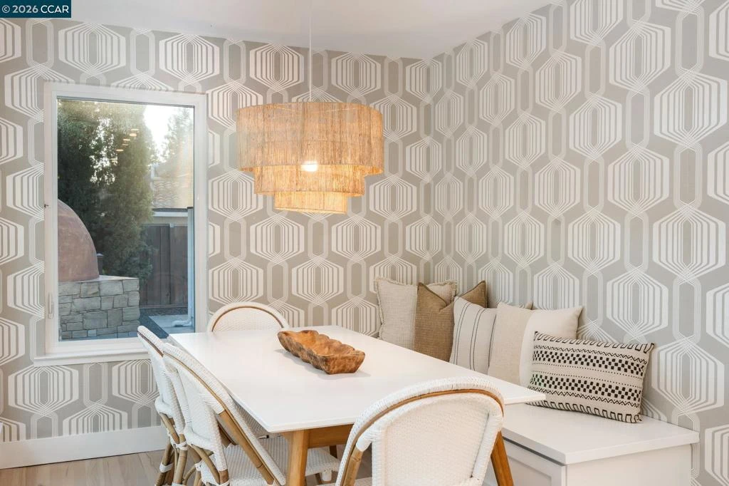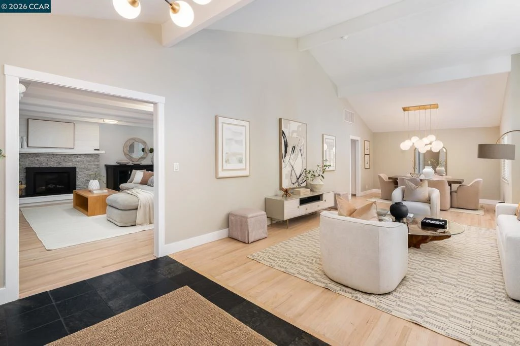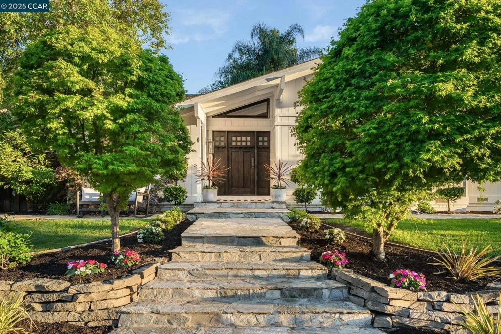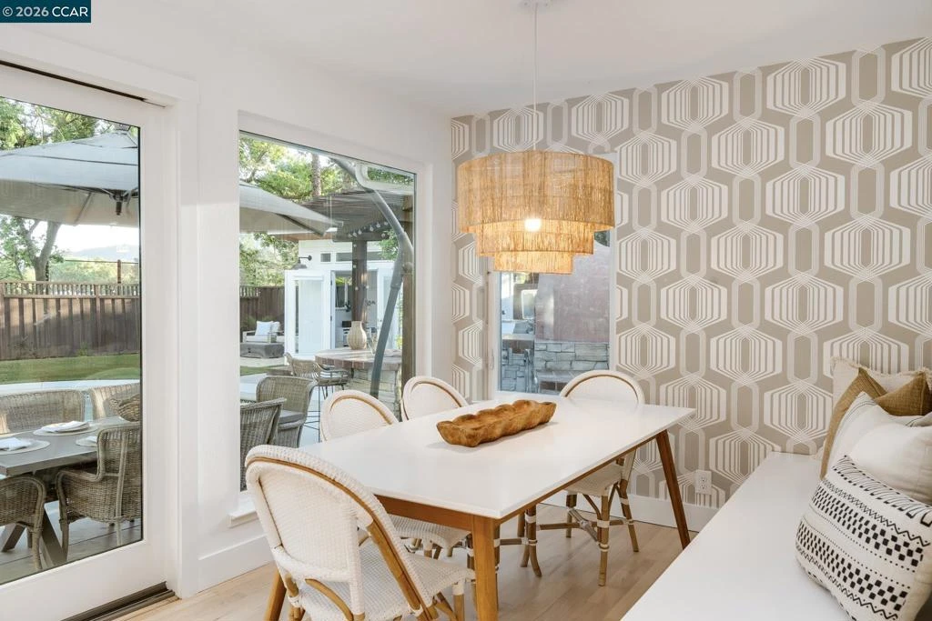 Welcome to this beautifully updated, highly sought after single-level home on a .34 acre lot in the Woodmont neighborhood of Danville. This home showcases hardwood floors, new carpet, fresh paint & custom light fixtures throughout. The front living & dining areas feature vaulted ceilings & abundant natural light creating an inviting ambiance, while the open-concept kitchen & family room serve as the heart of the home, a central hub for everyday living & entertaining. The kitchen is both functional & beautiful, featuring an abundance of cabinetry, quartz countertops, subway tile backsplash & Thermador & Dacor SS appliances. Large picturesque windows & sliding doors frame views of the backyard, enhancing indoor-outdoor flow. A sun-drenched nook w/built-in seating provides a stylish & functional space for casual dining. This floorplan offers excellent privacy, with 1 bed & full bath situated away from the rest, ideal for guests or a home office. Discover a flat, backyard oasis complete w/an outdoor kitchen incl BBQ grill, custom wood fired pizza oven & bar seating, sports court, saltwater pool/spa, large patios, firepit lounge & a detached shed. Within the award-winning SRV School District, walking distance to Vista Grande Elementary & easy access to the 680 freeway &dwtwn Danville.