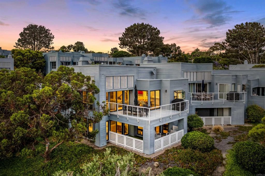 Discover the epitome of coastal elegance in this luxurious townhome nestled within the highly coveted Spindrift community in Del Mar. Revel in awe-inspiring ocean and lagoon views through expansive floor-to-ceiling Milgard windows, which bathe the interiors in natural light and highlight the exquisite European white oak flooring. The main level is designed for seamless living and entertaining, featuring a spacious open floorplan that flows effortlessly onto an oversized terrace which showcases even more stunning views. The chef's dream kitchen, adorned with top-of-the-line appliances and stunning Taj Mahal stone countertops, opens to the inviting family room, creating the perfect backdrop for gatherings and culinary delights. This area also boasts motorized window shades with a remote, offering convenience and enhancing the ambiance for any occasion. On the lower level, find tranquility in two ensuite bedrooms, each offering privacy and direct access to a serene outdoor patio. The attached two-car garage adds convenience, while additional touches inside such as crown and base molding, custom built-ins, and Gold Coast skylights in the third-level loft with built-in shelving elevate the living experience. The loft could also be converted into a 3rd bedroom if desired. The Spindrift community elevates your lifestyle with resort-style amenities, including two pristine pools and a soothing spa nestled amidst lush landscaping. Its prime location provides easy access to freeways, shopping, and the beach, as well as the scenic San Dieguito Lagoon path leading to Del Mar’s pristine beaches and vibrant Village. Explore popular restaurants, unique shops, and more in this charming coastal town. Immerse yourself in the quintessential Del Mar lifestyle with this unparalleled townhome, where coastal elegance and refined luxury converge.