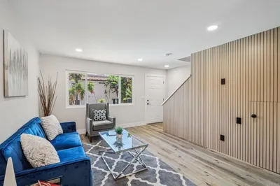 Experience coastal living at its finest in this stunning top-floor end unit located just over a mile from the beach. The spacious open floor plan is filled with natural light and features elegant wood flooring that flows throughout the living areas. Your modern kitchen comes fully equipped with sleek granite countertops and premium stainless steel appliances. The bedrooms offer a bright feel with large mirrored closet doors and updated energy-efficient windows for year-round comfort. This rare corner placement provides extra privacy and a quiet atmosphere in a highly desirable Del Mar location.