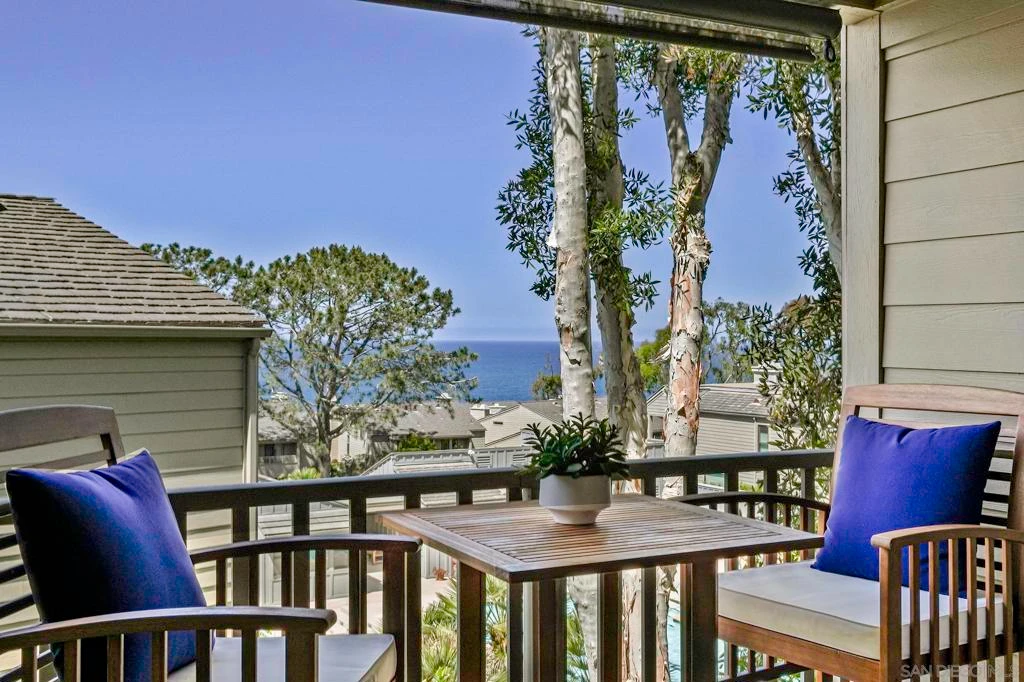 Perched atop picturesque bluffs, this spacious 2BR 2BA retreat embraces Del Mar's natural beauty & active lifestyle. Modern, updated & private, the open floor plan leads to an ocean-view balcony for sunsets & sea breezes. Amenities include a pool & spa, tennis & pickleball, sauna, gym & clubhouse. Dedicated parking for 2 cars. Stroll private paths to blufftop trails for dolphin shows & surfing. Nearby: beaches, parks, Farmers Market, cafes, Del Mar Plaza, racetrack & Dog Beach. Plus, top-rated schools.