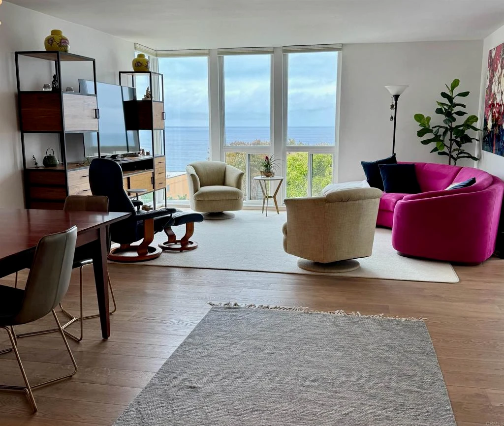 RACE RENTAL - July 17 thru September 7 - Holy Smokes! Experience the thrill of racing season from this prime Del Mar retreat, perfectly located West of 101 and West of Stratford Court. This stylish top-floor, single-level condo offers sweeping ocean views and an effortless blend of comfort and luxury. Featuring two ensuite bedrooms, the home has been thoughtfully remodeled with rich wood plank flooring, marble and quartz finishes, custom wood cabinetry, new windows, and top-tier appliances. Relax and unwind in the serene community setting with amenities including a pool, jacuzzi, sauna, and lush green spaces. Includes one garage space and access to community laundry. There is one queen size and one king size bed. Just a short stroll to Del Mar Village, Powerhouse Park, Del Mar Plaza, local cafes and bakeries, acclaimed restaurants, the library, boutiques, Torrey Pines Reserve, sandy beaches, and scenic trails. Live the Del Mar lifestyle all summer long—ocean breezes, world-class racing, and walk-to-everything convenience await!
