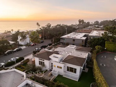 This enchanting Del Mar Village townhome captures the essence of coastal living—steps from the iconic Bluffs and pristine beaches, with breathtaking front-facing ocean views. In the heart of the village, you’re moments from top restaurants, boutiques, cafés and Del Mar Plaza. The open layout features vaulted ceilings, a cozy fireplace, hardwood floors, and sliding doors to a private ocean-view balcony—ideal for sunset dinners and peaceful mornings. The gourmet kitchen offers an oversized island, stainless appliances, and custom cabinetry. The sunlit primary suite includes high ceilings, a large walk-in closet, spa bath, and stacked laundry. A one-car garage with EV charger plus carport parking add ease. The lower level provides a second primary, full laundry, ample storage, a second kitchen, and a versatile oversized room perfect for media, an office, or guests. Immaculately crafted and move-in ready, this rare sanctuary blends panoramic Pacific beauty with effortless Del Mar elegance.