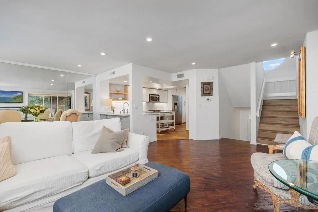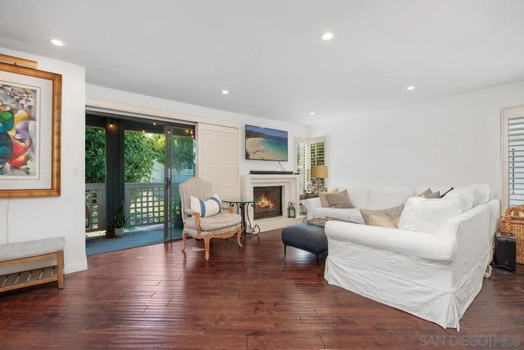 Rarely available elevated corner townhome that lives like a single-family home, with only one shared wall, in the highly desirable Spindrift Del Mar community. This home boasts tasteful upgrades, including a beautifully remodeled kitchen with new cabinets, updated bathrooms, new copper plumbing, a new electrical panel, and new LVP flooring. Enjoy the private deck off the living room, perfect for relaxing, and a spacious living room featuring a gas and wood-burning fireplace. The Spindrift Del Mar community, known for its timeless modern architecture, is perched just above the Flower Hill shopping and dining plaza-steps from Whole Foods, amazing restaurants, and boutique shops. It's just minutes to the beach, Del Mar Fairgrounds, and award-winning schools. This townhome offers two ensuite bedrooms, 2.5 bathrooms, 1326 sq.ft of living space, central air conditioning, and direct access to an oversized 2-car garage with epoxy floors, a work room and laundry. The HOA includes water, trash, two pools, a spa and exterior building maintenance. With all these amenities and an unbeatable location, this home is a must-see!