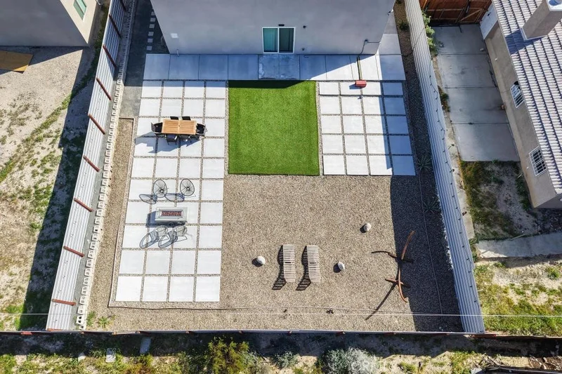 Welcome to your private vacation-style retreat—where modern luxury and thoughtful design come together in this stunning single-story home built in 2021. Featuring 3 bedrooms and 2 bathrooms, this contemporary masterpiece sits on an oversized lot with a beautifully landscaped backyard designed for both relaxation and expansion, offering ample space for a pool, ADU, cabana, or more. Enjoy the freedom of NO HOA and short-term rental friendly zoning, making this property ideal as a primary residence, second home, or investment opportunity. Inside, you’ll find a bright and open floor plan highlighted by high ceilings, recessed lighting, ceiling fans, and designer finishes throughout. The gourmet kitchen is a true showpiece, featuring quartz countertops and backsplash, stainless steel appliances, a range hood, pantry, and energy-efficient high-end appliances. Owned solar, quality construction, and energy-saving features help keep utility costs low. The luxurious primary suite offers a peaceful retreat with direct access to the backyard via sliding glass doors, a spacious walk-in closet, and a spa-inspired bathroom complete with dual quartz vanities and a walk-in shower. Two additional generously sized bedrooms provide comfort and flexibility, while the beautifully appointed secondary bathroom delivers both style and functionality. Additional highlights include an interior laundry area with upper cabinetry, fire sprinklers for added safety, and paid-off solar for long-term efficiency. Step outside to enjoy breathtaking mountain-view sunsets, a commercial-grade gas fire pit, ambient string lighting, and a custom metal fence—creating the perfect setting for entertaining or unwinding in total privacy. Professionally designed throughout, this home has it all!