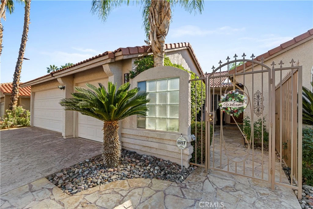 HUGE PRICE REDUCTION !!! GORGEOUS GOLF COURSE HOME!!! Seller is motivated!!! Pride of ownership is the best way to describe this incredible home located on the 13th fairway in a highly desirable neighborhood of Mission Lakes in Desert Hot Springs. Upon entering this stunning home you will observe all the custom details. So many upgrades including lovely tile flooring, two tone paint, upgraded lighting, paid solar and so much more. The kitchen has beautiful wood cabinets, granite counter tops with breakfast bar seating, and stainless steel appliances. The spacious living room has a cozy gas fireplace, custom built in wall unit that has lights, TV, stereo system and surround sound, beautiful ceiling fan and French doors leading to the rear yard, in addition it has a lovely dining area adjacent to the living room and kitchen. This wonderful home has a floor plan perfect for entertaining. The bedrooms are all generous in size, the primary bedroom offers large walk-in closet, french doors leading to the rear yard and also has double doors connecting to additional room which is perfect for office or sitting room. The primary bathroom is gorgeous with soaking tub, separate shower and dual vanities. The additional bedrooms offer ceiling fans and picturesque arched windows. The guest bathrooms are lovely and beautifully upgraded. Upon exiting to the rear yard you will see the beautiful golf course and surroundings perfect to sit and have morning coffee or enjoy your evenings relaxing in your own spa. The oversized 2 car garage also has golf cart area with rear door leading to the golf course. This wonderful community has so much to offer swimming pools, tennis courts, pickleball, restaurants, fitness center and more! A must see home! Make your appt. today to see this lovely home!