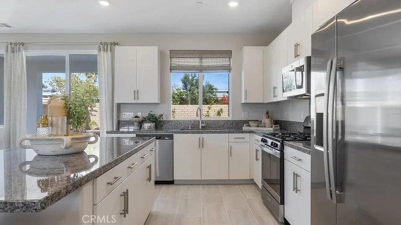 NEW CONSTRUCTION! Ready for Quick Move-in! This new four-bedroom home offers convenient single-story living. An inviting open-concept floorplan boasts convenient access to a covered patio for seamless entertaining and multitasking throughout the week. All four bedrooms are tucked away to the side of the home for improved comfort and privacy, including the luxe owner’s suite with a full bathroom and walk-in closet. Rancho Descanso is a new community of single-family homes for sale in Desert Hot Springs, CA. The gated community is located within a vibrant city with endless outdoor recreation at the Whitewater Preserve. Desert Hot Springs is known for its hot and cold mineral springs, with several boutique resorts and spas. Residents can take in local landmarks, including the Palm Springs windmills.
