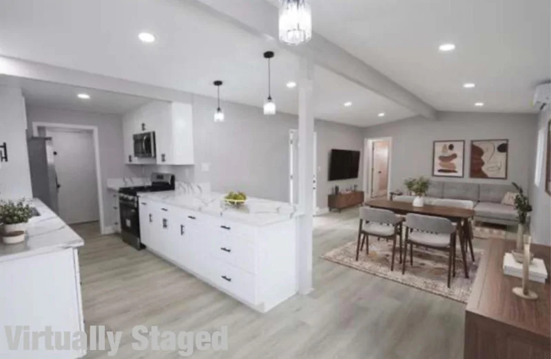 Beautifully renovated 2-bedroom, 1-bath home offering approx. 900 sq ft of stylish living on a large corner lot. Features include new interior and exterior paint, luxury vinyl flooring, quartz countertops, new cabinetry, updated lighting and fixtures, and a dedicated indoor laundry room with washer/dryer hookups. Enjoy panoramic mountain views and a fully fenced yard with no HOA. Detached garage offers excellent potential for conversion into a junior ADU for additional living space or rental income (buyer to verify). Conveniently located just approx. 15 minutes from Palm Springs. A must-see with many upgrades throughout.