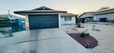 Renovated single family residence home on a large corner lot, this is one of the best-value move-in ready homes in the area. Featuring hardwood kitchen cabinets, smart A/C in every room, and ADU potential.This 2-bedroom, 1-bath Single Family Residence home (900 sq ft) offers a bright, open layout in a prime central location near schools, shopping, and essential services. Inside, enjoy new luxury vinyl plank flooring and recessed LED lighting throughout.The custom kitchen features solid hardwood cabinetry (not shaker), soft-close drawers, quartz countertops, new plumbing, and matching appliances. Additional upgrades include new doors and dual-pane windows, a fully redesigned bathroom with quartz finishes, updated switches with dimmers and GFCIs, and a ceiling fan in the bedroom.Stay comfortable year-round with high-efficiency 11,000 BTU smart A/C units in each room, controlled by remote or app.Outside offers a welcoming entry, fully fenced yard, and private backyard ideal for relaxing or entertaining.Highlights include a newer roof (under 2 years), indoor laundry, detached garage with ADU potential (buyer to verify), covered 2-car carport, no HOA, and approx. 15 minutes to Palm Springs.Move-in ready, efficient, and full of upside- don't miss this opportunity.