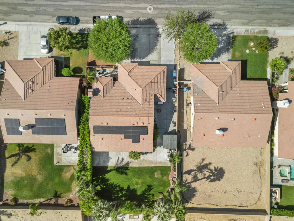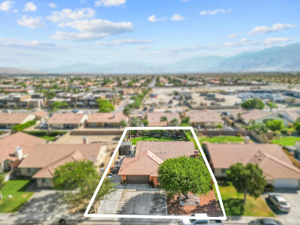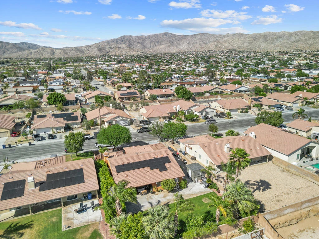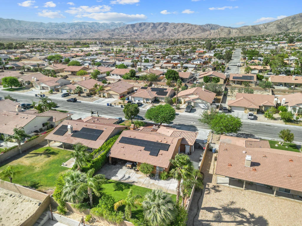 Beautifully maintained 4-bedroom, 2-bath home located in Desert Hot Springs, offering 1,984 sq ft of living space on a 9,147 sq ft lot. Built in 2004, this property features an inviting front courtyard with custom wrought iron gate, professional landscaping, and mountain views.Interior highlights include a spacious living area with fireplace, tile flooring, and a well-appointed kitchen with porcelain countertops, custom cabinetry, and stainless steel appliances. All bedrooms feature walk-in closets and wood-like flooring. Bathrooms have been updated with newer showers and fixtures. The primary bedroom includes French doors leading to the backyard.The backyard is designed for both relaxation and entertaining, featuring a covered patio, concrete finishes, mature palm trees, fruit trees, and a water feature.The original 3-car garage has been converted into a 2-bedroom, 1-bath accessory unit with a private entrance, offering flexible use for extended family or potential rental income (buyer to verify permits and use).Additional features include 17 solar panels that are paid in full and no HOA.
