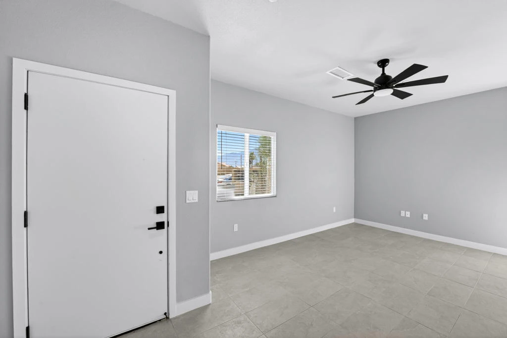 Long-Term lease offered on this brand-new construction home in Desert Hot Springs. This home offers 1,370 square feet of thoughtfully designed living space with a fresh, contemporary style that meets today's standards of comfort and efficiency. Enjoy an open-concept floor plan, where the living, dining, and kitchen areas seamlessly connect--creating the perfect environment for both everyday living and entertaining. The kitchen showcases quartz countertops and custom cabinetry complemented by high ceilings and an abundance of natural light. Tile flooring runs throughout the main living areas, while the bedrooms are finished with carpeting. Three spacious bedrooms and two well-designed bathrooms, along with a dedicated laundry room for convenience. Energy efficiency is top of mind, with high-performance windows, a modern HVAC system, and an owned solar system to help keep utility costs low. A generously sized backyard is ideal for entertaining. Easy access to I-10, downtown Palm Springs, and nearby shopping, dining, parks, and schools. Experience the best of modern desert living in this beautifully built home.