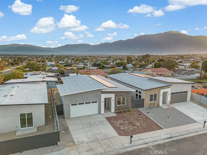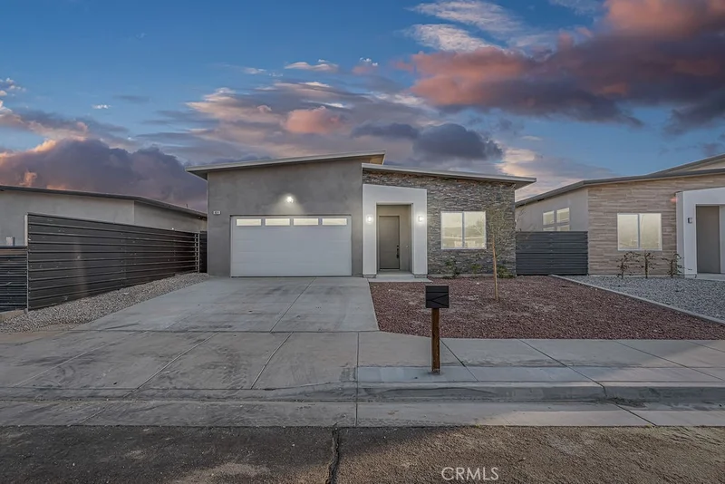Step into modern comfort with this brand-new 4-bedroom, 2-bath home in the heart of Desert Hot Springs, just minutes from Mission Lakes Country Club golf course. Ready for move-in, this stunning property offers the perfect blend of style, space, and efficiency. Inside, you’ll love the open, light-filled layout featuring high ceilings, spacious rooms, and beautiful laminate wood flooring throughout the main living areas. The home shines with upscale finishes, including sleek tile bathrooms with glass shower doors and a bright, contemporary kitchen designed for both everyday living and entertaining. Enjoy quartz countertops, modern brown cabinetry, and ample storage to keep everything organized. The private primary suite is complete with a large bathroom and dual-sink vanity featuring desirable modern touches. Plus, enjoy major savings with paid solar for lower electric bills, and best of all, NO HOA fees! FHA and VA financing options are available, and potential buyer incentives. This is an incredible opportunity to own a stylish, affordable new home in a growing community. Don’t miss your chance to make this beautiful home yours. Schedule your showing today!